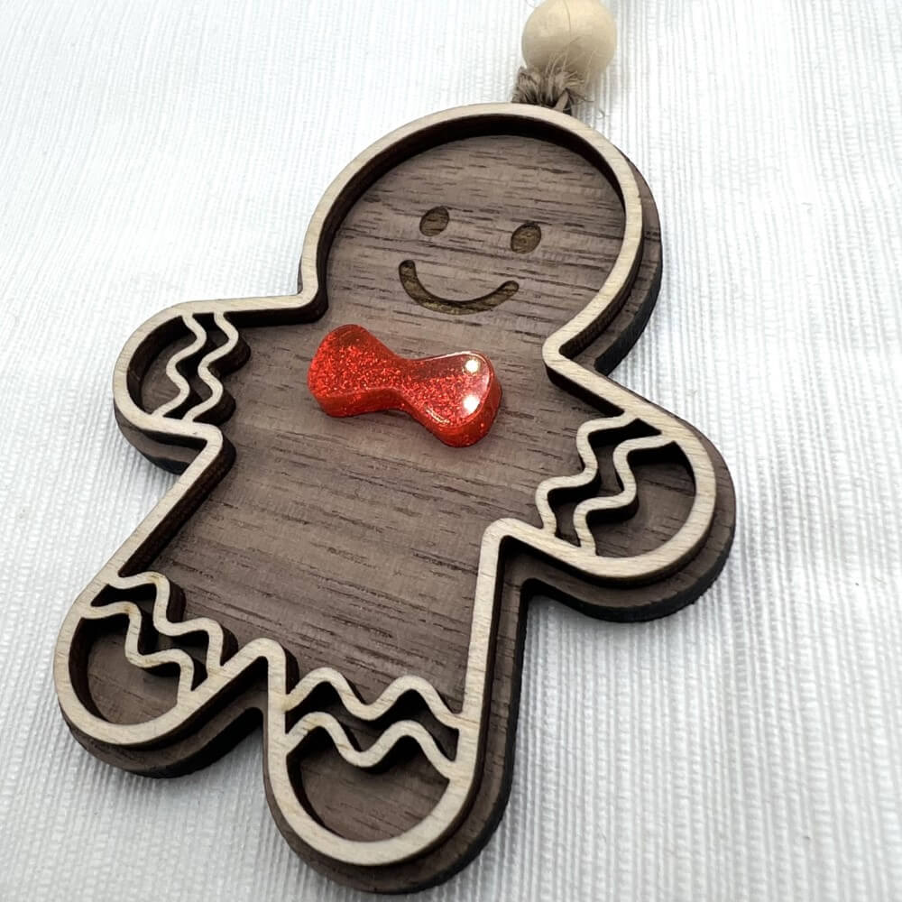 Dekorer juletræet med vores små kagemænd, eller kagekoner. Kagemanden er pænt klædt på med en flot rød glitrende butterfly, og kagekonen med en smuk rød glitrende sløjfe.