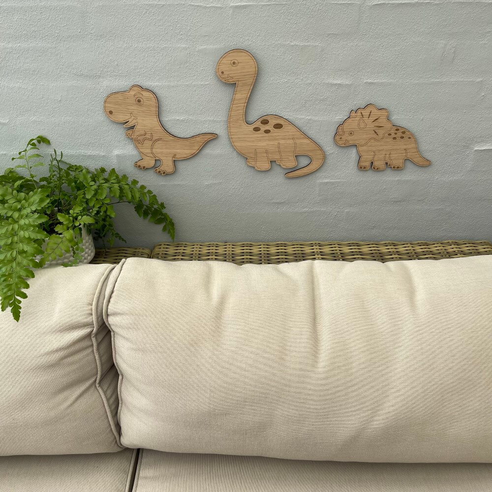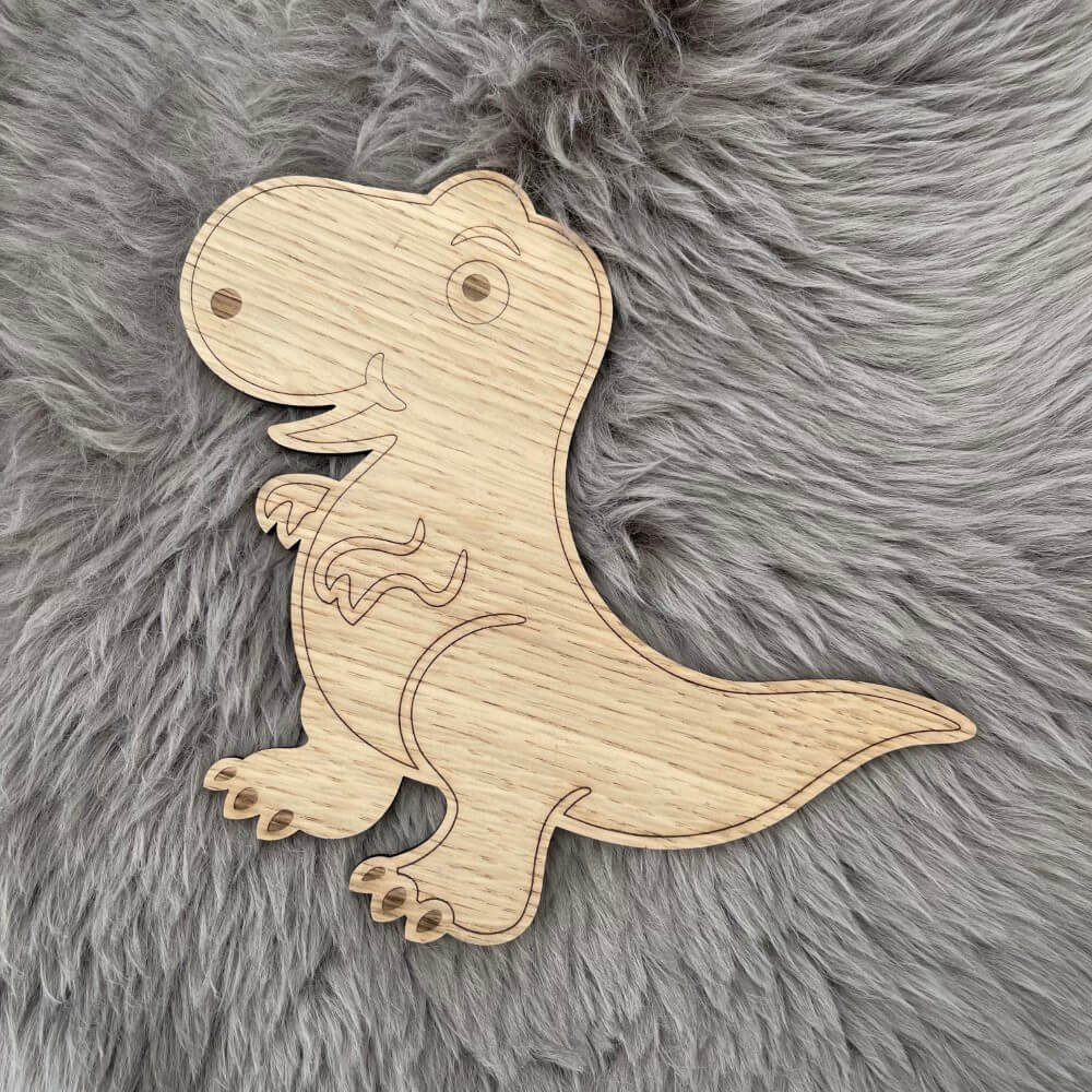 Denne dekorative dinosaur er med til at sætte et personligt præg på børneværelset. Vil passe perfekt sammensat med de andre dinosaurer. Fåes kun i Ege finér.
